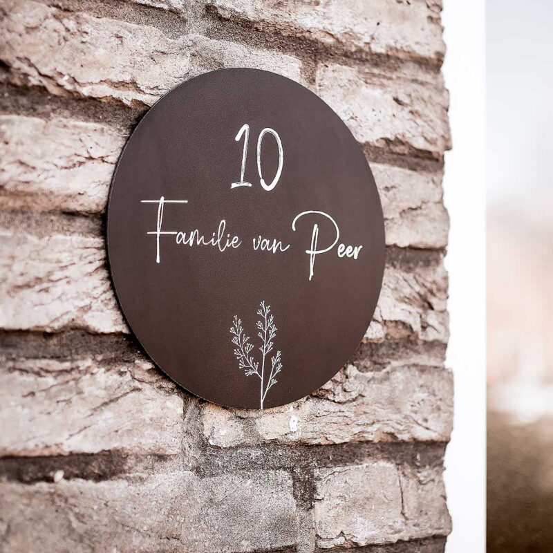 Alle naamborden zijn helemaal naar wens te personaliseren met jullie namen, huisnummer en eventueel een leuk symbool (hartje, huisje, honden- of kattenpootje). Het ronde design oogt modern en speels tegelijk, en past perfect bij allerlei soorten huizen – van nieuwbouwwoning tot knus rijtjeshuis.