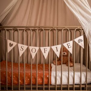- Veelzijdig in gebruik: Of je ze nu ophangt aan de box, voor het raam als geboorteaankondiging, of als decoratie aan de muur; deze slinger is multifunctioneel en groeit mee met je kind.